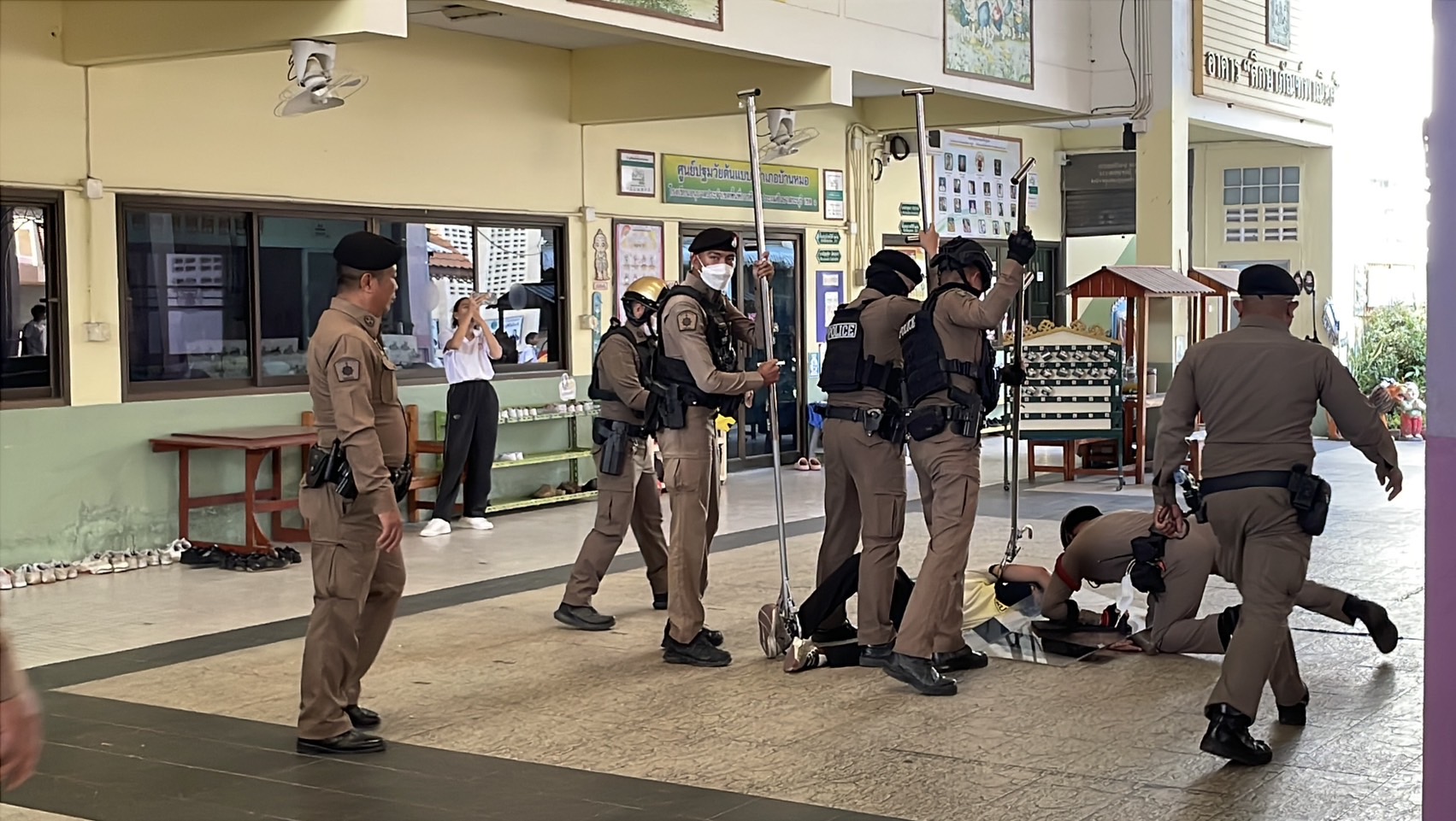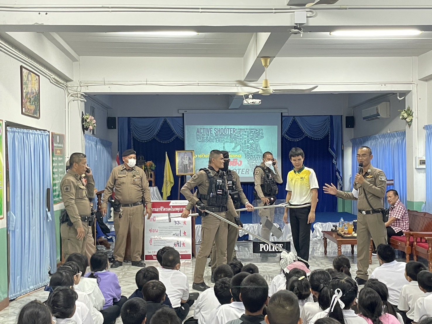 ร.ต.อ.โอภาส วงษ์ชื่น รอง สว.(ป.) สภ.บ้านหมอ พร้อมเจ้าหน้าที่ตำรวจสายตรวจ ร่วมซักซ้อมแผนเผชิญเหตุ”หนี ซ่อน สู้” ณ โรงเรียนอนุบาลบ้านหมอ (พัฒนราษฎร์) ต.บ้านหมอ อ.บ้านหมอ จว.สระบุรี