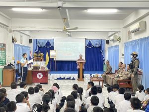 ร.ต.อ.สราวุธ เกษแจ่ม รอง สวป.(ชส.) สภ.บ้านหมอ , ด.ต.ณัฐกฤษฏ์ เหล่าวงษ์ศรี ผบ.หมู่ (ป.) สภ.บ้านหมอ เป็นวิทยากรบรรยายให้ความรู้ “หนี ซ่อน สู้”