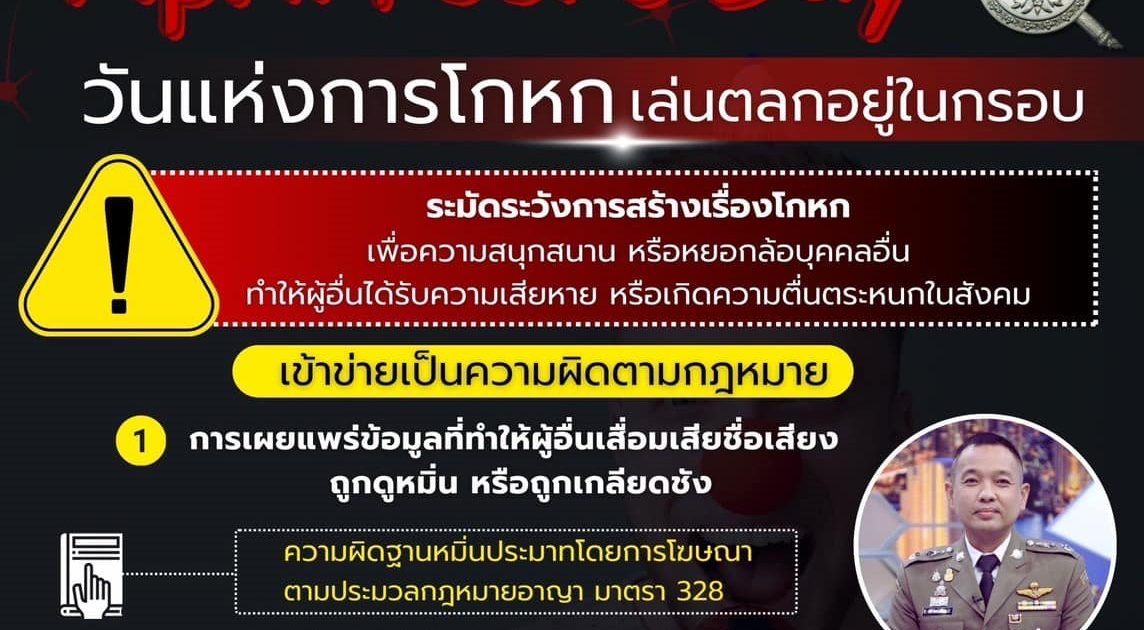 ตร. เตือน วันแห่งการโกหก เล่นตลกอยู่ในกรอบ ทุกคนไม่ได้ชอบ อาจถูกฟ้องดำเนินคดี