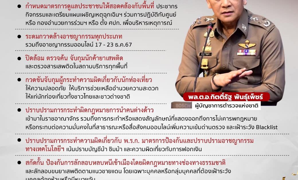 ระดมกวาดล้างอาชญากรรมทุกประเภท รวมถึงอาชญากรรมออนไลน์ 17 – 23 ธ.ค.67
