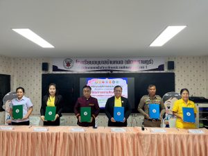 วันที่ 6 ตุลาคม 2566 เวลา 09.00 น. พ.ต.อ.ประกร นามศรี ผกก.สภ.บ้านหมอ มอบหมายให้ พ.ต.ท.สาราวุธ โกษีโรจน์ สวป.สภ.บ้านหมอ ร่วมพิธีลงนามบันทึกข้อตกลงความร่วมมือ (MOU) การขับเคลื่อนการดำเนินงานตามโครงการสถานศึกษาสีขาว ปลอดยาเสพติดและอบายมุข ประจำปีการศึกษา 2566 เพื่อร่วมกันหาวิธีป้องกัน และวางแผนการแก้ไขปัญหาจากภัยของยาเสพติดและอบายมุขในสถานศึกษา