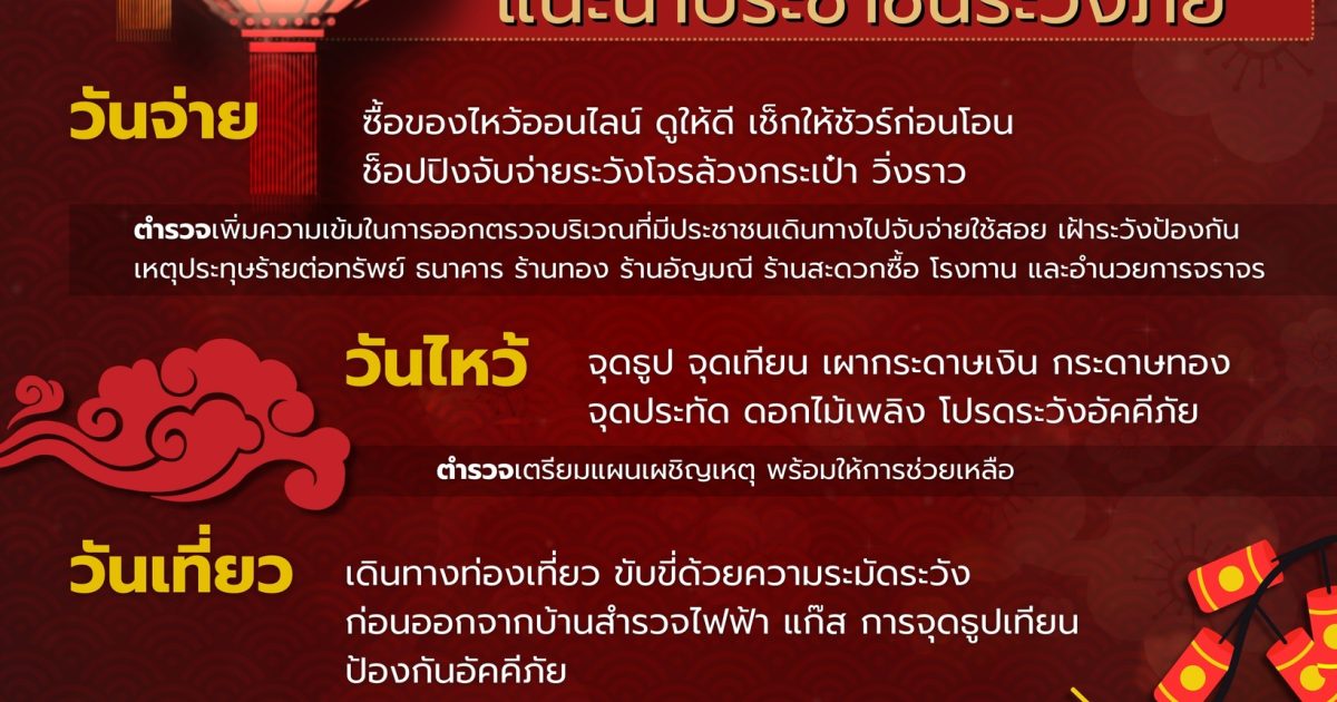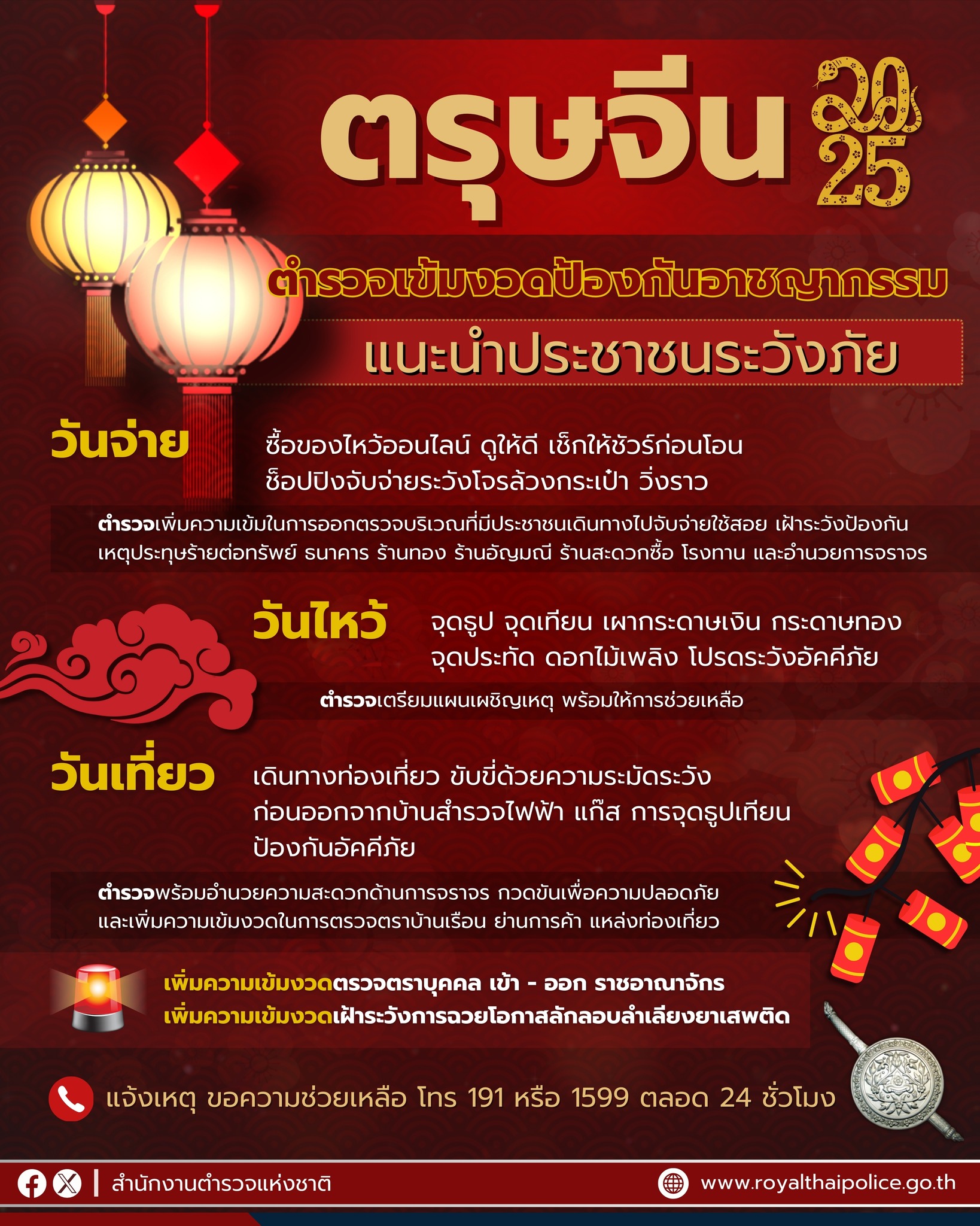 สำนักงานตำรวจแห่งชาติมีมาตรการเข้ม ดูแลประชาชนช่วงเทศกาล #ตรุษจีน 2568 ทั้งวันจ่าย วันไหว้ วันเที่ยว แนะระมัดระวังภัย ![]()