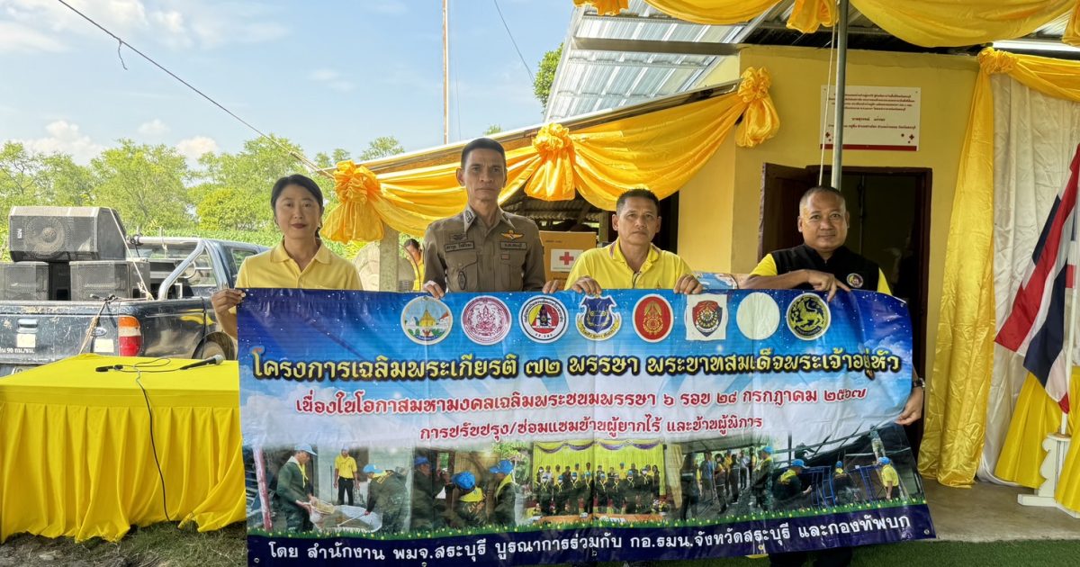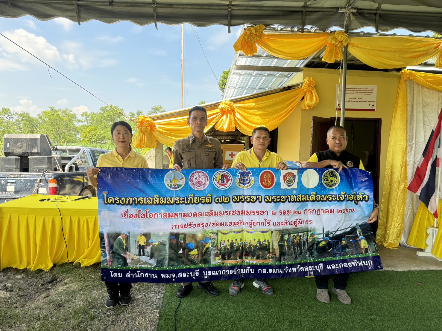 วันที่ 11 ตุลาคม 2567 เวลา 09.00 น. ภายใต้การอำนวยการของ พ.ต.อ.มนัสเวท ทองอิ่ม ผกก.สภ.บ้านหมอ ได้สั่งการให้ พ.ต.ท.พล พื้นพรม รอง ผกก.ป.สภ.บ้านหมอ, พ.ต.ท.สราวุธ โกษีโรจน์ สวป.สภ.บ้านหมอ, ร.ต.ต.ณรงค์ อันยงค์, ส.ต.อ.ศิระกร อมรบวรพล ร่วมโครงการซ่อมแซมสร้างบ้านผู้ยากไร้ ผู้ด้อยโอกาส ในพื้นที่จังหวัดสระบุรี เฉลิมพระเกียรติ เทิดไท้องค์ราชัน พระบาทสมเด็จพระประเมนทรรามาธิบดีศรีสินทร มหาวชิราลงกรณ พระวชิรเกล้าเจ้าอยู่หัว เฉลิมพระชนมพรรษา ครบ 6 รอบ ประจำปีงบประมาณ พ.ศ.2567 โดยเหล่ากาชาดจังหวัดสระบุรี แก่นายสุวรรณ แก้วนก บ้านเลขที่ 182 หมู่ที่ 7 ตำบลสร่างโศก อำเภอบ้านหมอ