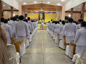 1.พิธีสวดพระพุทธมนต์และพิธีทำบุญตักบาตรถวายพระราชกุศล เวลา 08.00 น.
