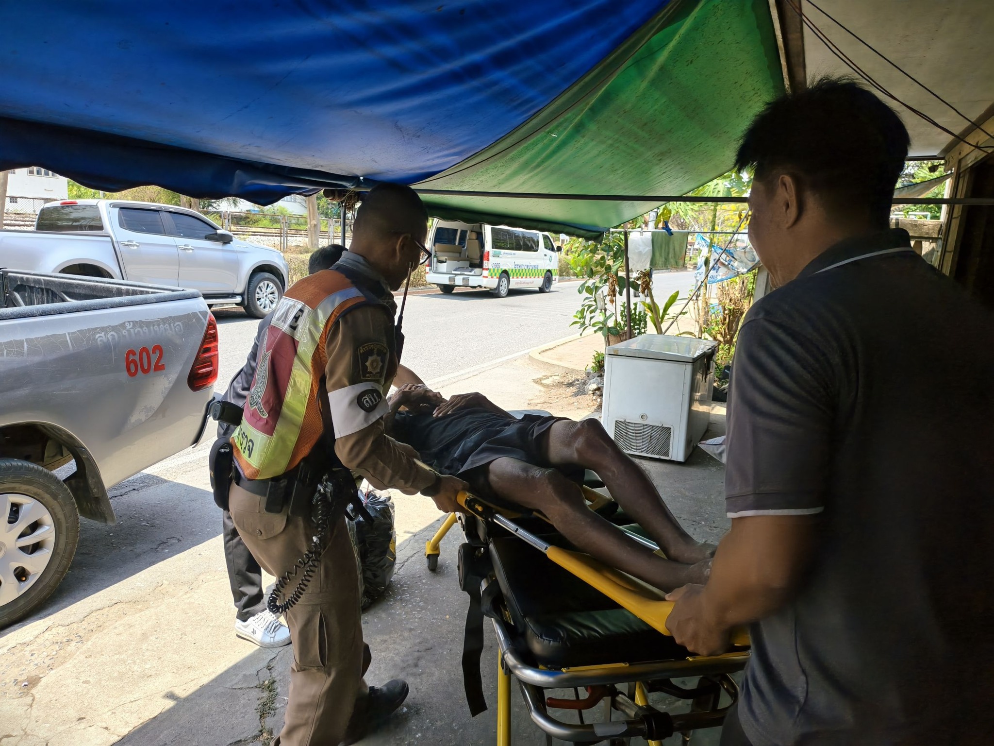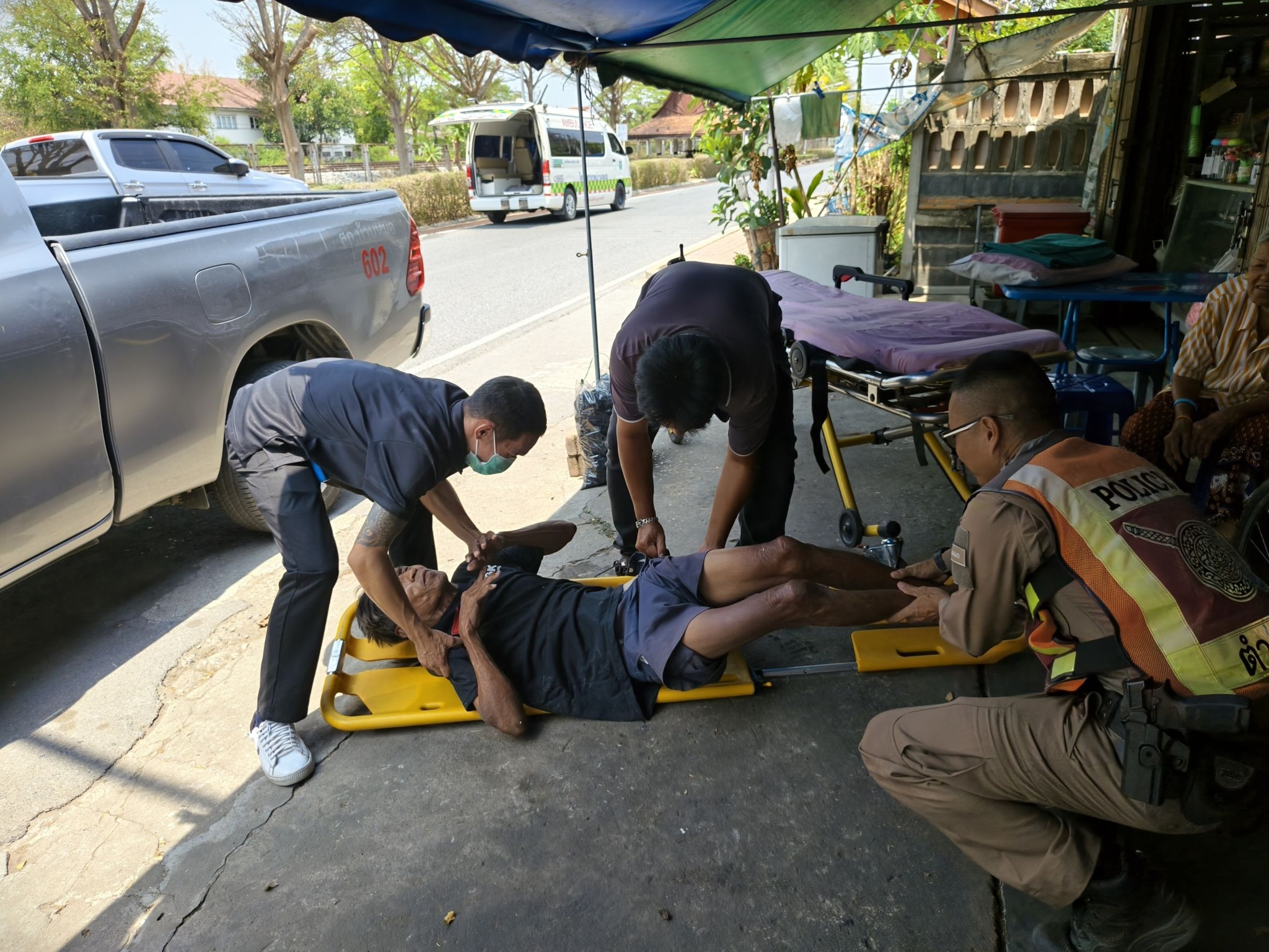 ให้การช่วยเหลือประชาชนมีอาการนอนชักเกร็งอยู่บริเวณริมถนน