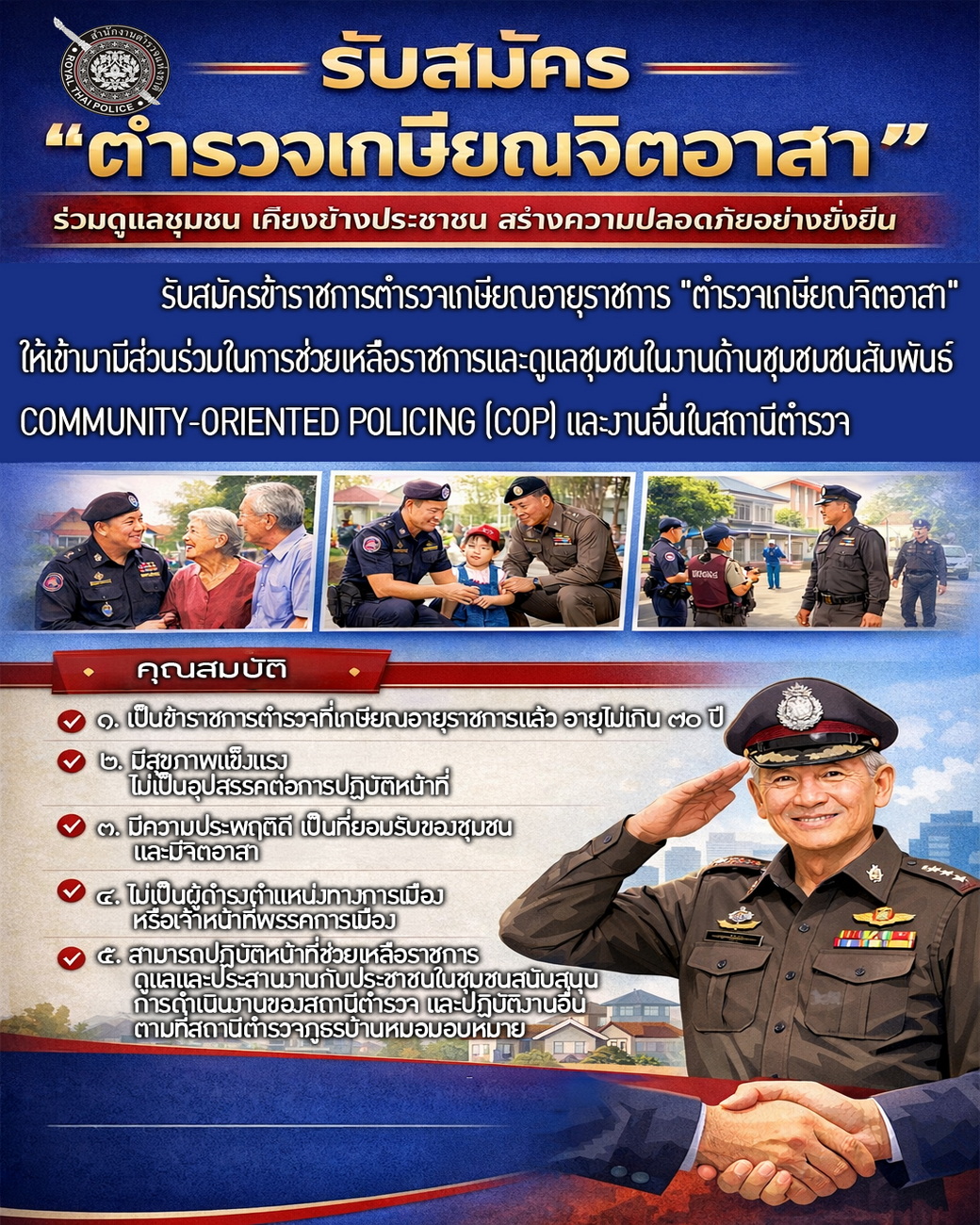 รับสมัครข้าราชการตำรวจเกษียณอายุราชการ “ตำรวจเกษียณจิตอาสา” ให้เข้ามามีส่วนร่วมร่วมในการ