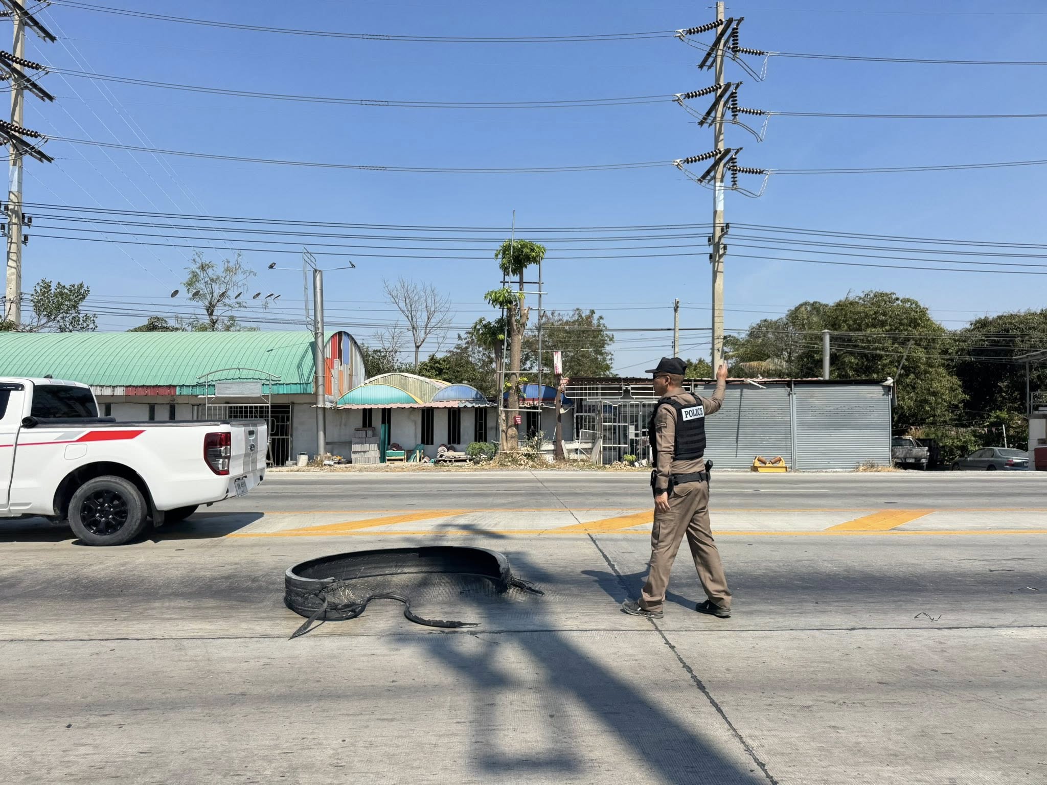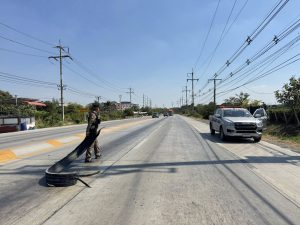 ร.ต.ท.ณรงค์ อันยงค์ รอง สว.(ป.) สภ.บ้านหมอ ร้อยเวร20 และ จ.ส.ต.ศิระกร อมรบวรพล ผบ.หมู่(ป.) สภ.บ้านหมอ สายตรวจประจำชุด ระหว่างออกตรวจตราพื้นที่ มาถึงบริเวณ ใกล้เคียงหน้าบริษัทสยามไฟเบอร์กลาส จำกัด ตำบลบางโขมด พบเศษยางรถบรรทุกขนาดใหญ่ อยู่บริเวณกลางถนนเกรงว่าจะเกิดอุบัติเหตุแก่ผู้ใช้รถใช้ถนน จึงได้ทำการนำเก็บเข้าข้างทาง เพื่อให้รถสัญจรผ่านไปได้ต่อไป