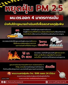 4 มาตรการบังคับใช้กฎหมาย ดำเนินคดีเข้ม เพื่อลดสาเหตุการเกิดฝุ่นละออง PM 2.5