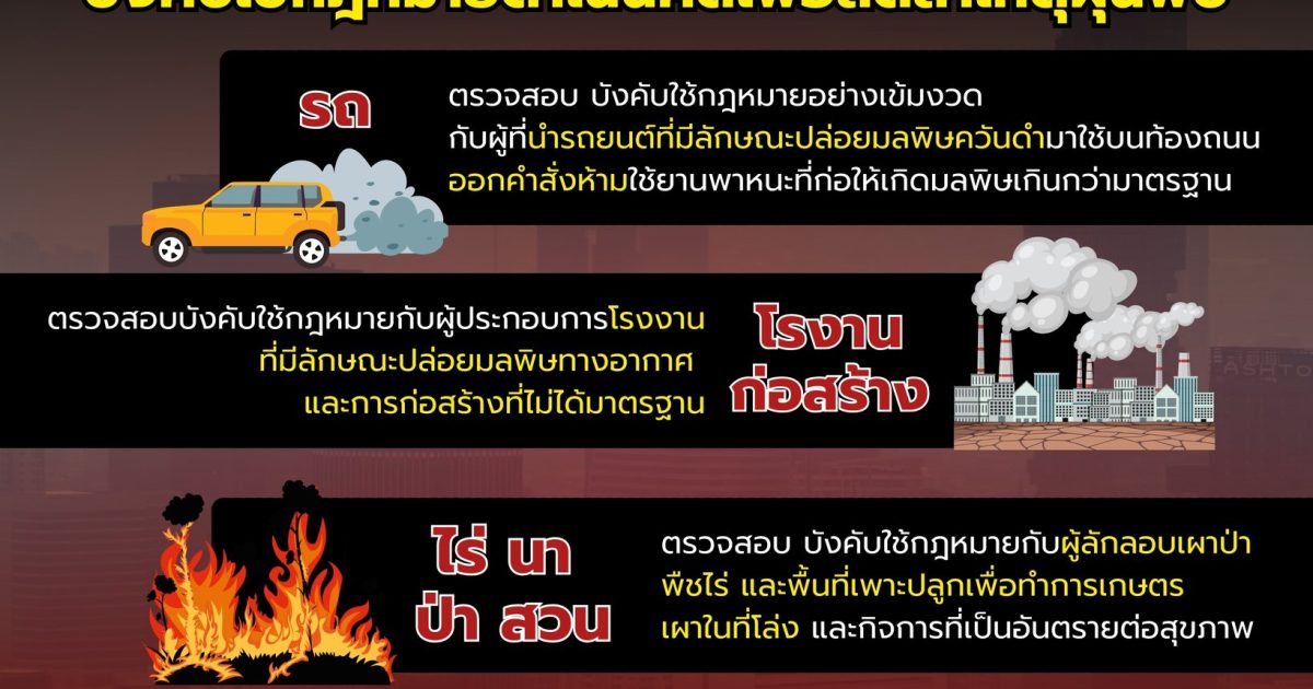 4 มาตรการบังคับใช้กฎหมาย ดำเนินคดีเข้ม เพื่อลดสาเหตุการเกิดฝุ่นละออง PM 2.5