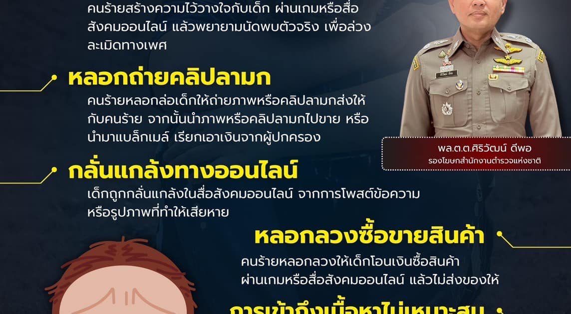 สำนักงานตำรวจแห่งชาติ เตือน 5 ภัยออนไลน์ วายร้ายทำลายเด็ก ที่ผู้ปกครองต้องตรวจสอบ ก่อนจะสายเกินไป