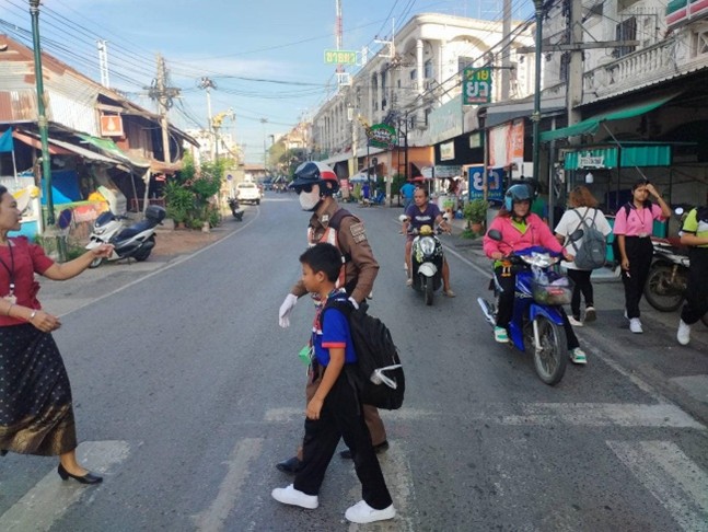 ปฏิบัติหน้าที่อำนวยความสะดวกจราจร บริเวณหน้าโรงเรียนมัธยมอนุกูลวิทยา ต.บ้านหมอ อ.บ้านหมอ จว.สระบุรี