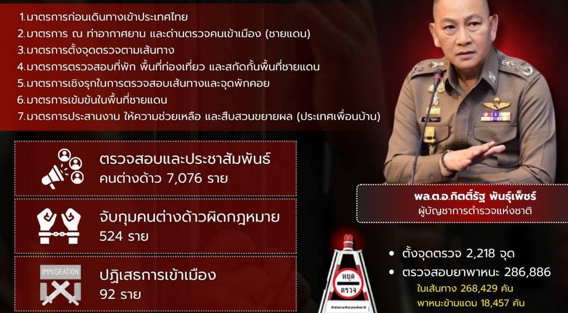 ผบ.ตร. สรุปผลการปฏิบัติ 7 มาตรการเข้มข้น หลังขีดเส้นตาย 7 วัน ปฏิบัติการเชิงรุกตั้งแต่ก่อนเข้าประเทศ เอ็กซเรย์ทุกพื้นที่ สกัดกั้นชายแดน ปรับแผนรองรับ
