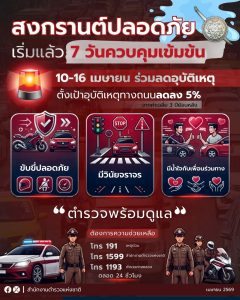 สงกรานต์ปลอดภัย 10-16 เมษายน ร่วมลดอุบัติเหตุ ลดการสูญเสีย