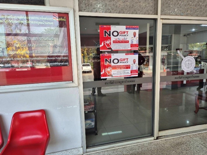 ภาพป้าย No Gift Policy (2 ภาษา ทั้งภาษาไทย และ ภาษาอังกฤษ)